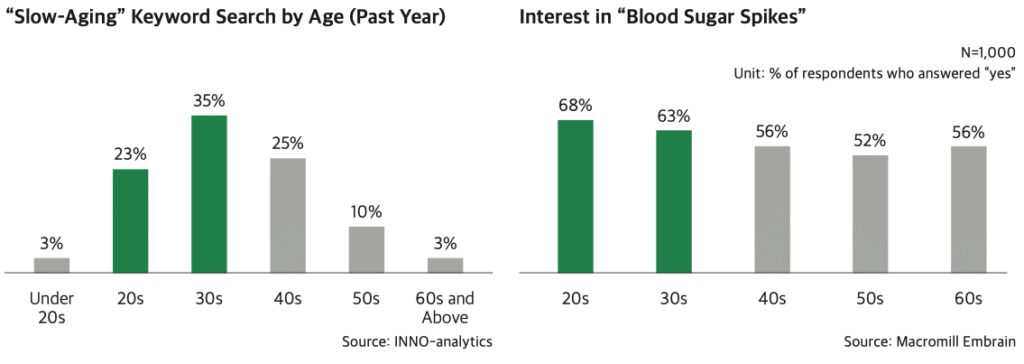 Interest in slow-aging is particularly strong among those in their 20s and 30s—more so than middle-aged groups. Anxiety about early aging, combined with social media–driven content, is powering the spread of this trend.